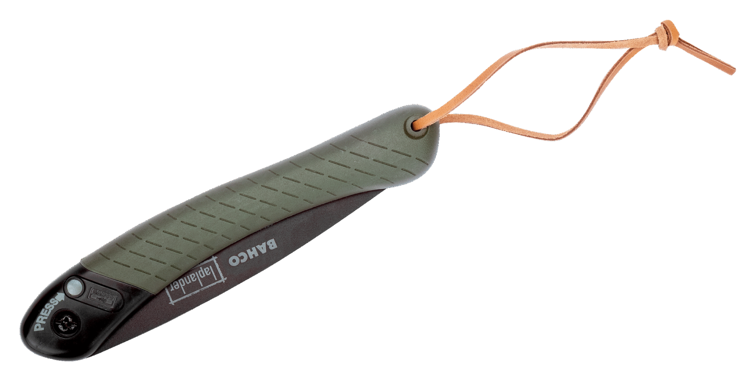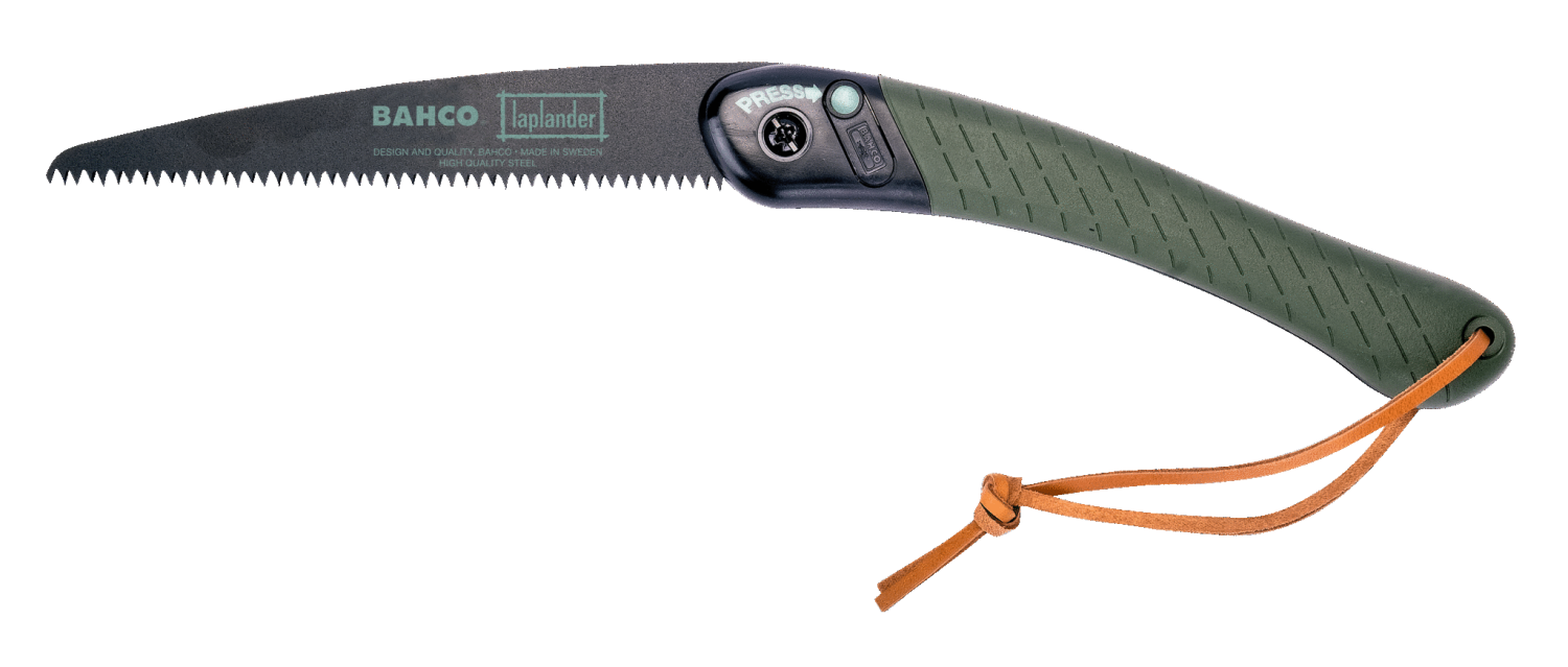Hopfällbar grensåg med tvåkomponentshandtag för sågning av torrt trä, plast eller ben.