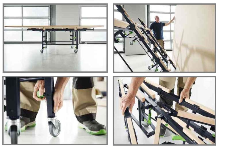 - arbetsbord med justerbar höjd för bearbetning och tillsågning av stora skivor