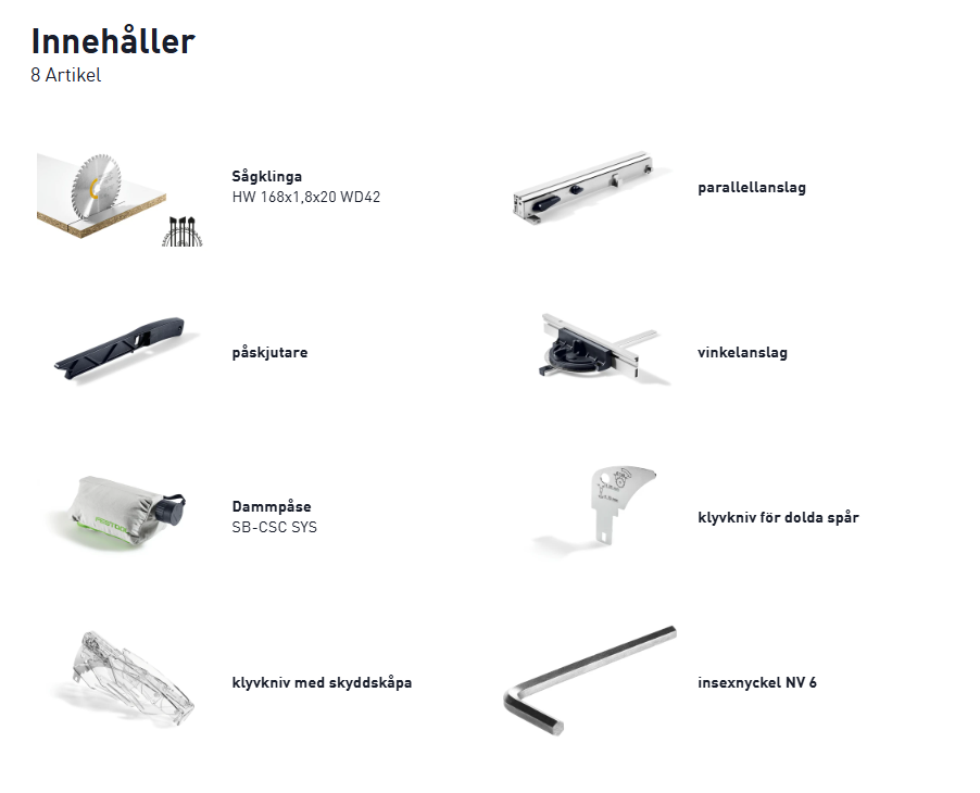 - Mycket exakt parallellanslag: robust parallellanslag med dubbelklämma (via endast en spännspak) för exakt justering och perfekta sågresultat