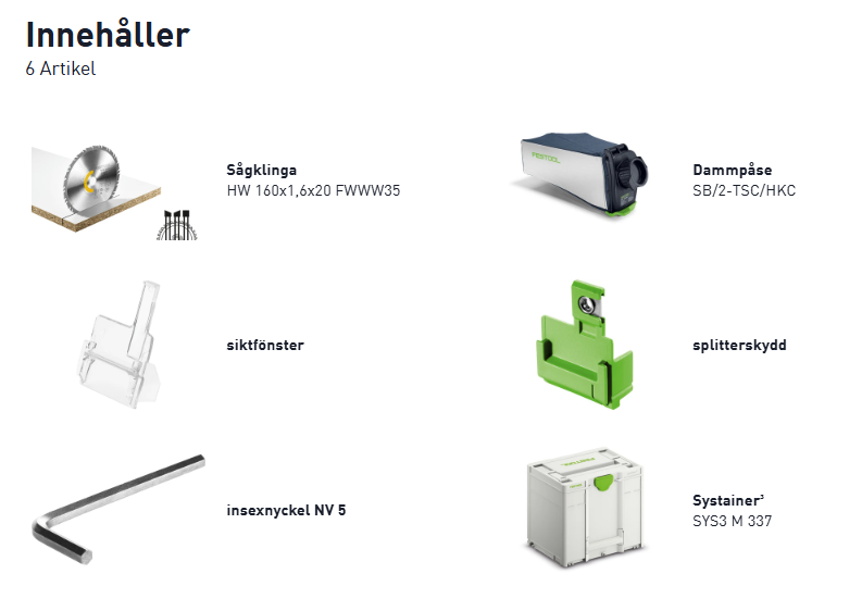 - Sågsystem i en klass för sig: underlättar arbetet med ett brett utbud av tillbehör, ljusmodul, dammpåse, styrskena