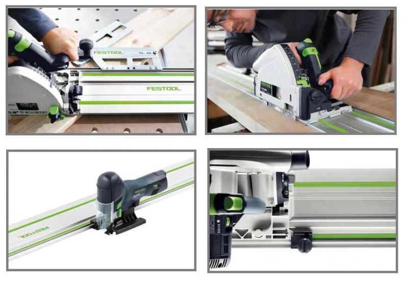 Styrskena för säker och spikrak styrning av maskinen. Passar till Festool verktyg som är optimerade för styrskena.