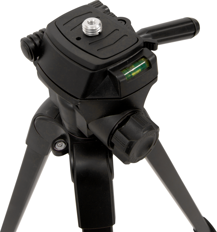 Lätt stativ med utdragbara ben och spindel, upp till 240 cm högt, för kompakta, 3D-prisma- och korslinjelasrar. Justerbart huvud (för lutningar) med fast 1/4”-skruv.