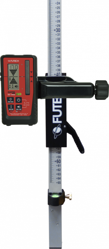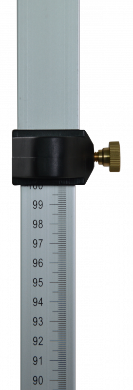 Utdragbar mätstav, upp till 240 cm, med markeringar i cm/mm på framsidan och en snabbkopplingsklämma för att snabbt och enkelt blockera mottagarens höjd.