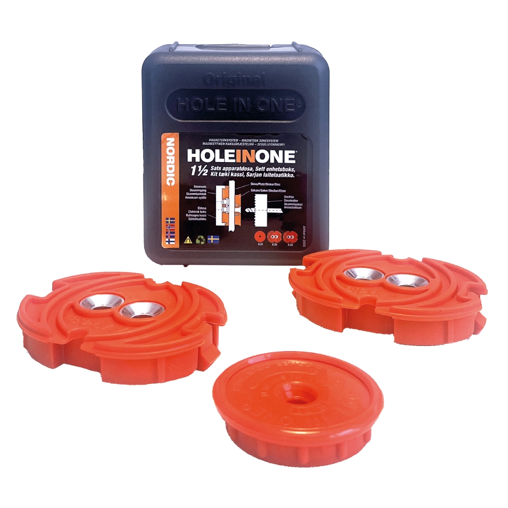 Hole In One® Magnetsöksystem i komplett sats för 1 1/2 apparatdosor och magnetsökare som snabbt och enkelt lokaliserar dosor bakom alla typer av skivor och paneler.