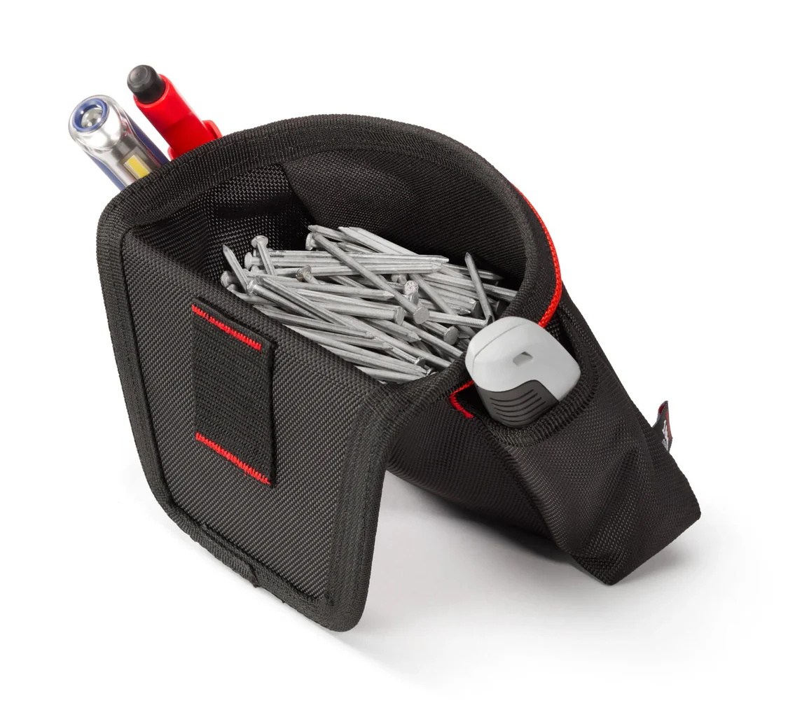 Denna smidiga ficka för material fästs enkelt i bakfickan, vilket ger dig snabb tillgång till dina mest använda skruv eller spik. Den förstärkta klaffen glider enkelt ner i bakfickan eller fästs i bältet och säkerställer att fickan sitter stabilt under hela arbetsdagen. Huvudfacket har gott om plats för både verktyg, spikar och skruvar, medan sidofickorna gör det enkelt att organisera mindre redskap som du vill ha lättåtkomliga. Den kompakta och tåliga designen är byggd för att klara krävande användning, samtidigt som den sitter bekvämt – perfekt för dig som vill arbeta effektivt utan avbrott.