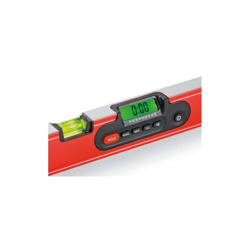 Siffrorna i displayen roterar automatiskt 180° så att du alltid läser av rättvänt och inte upp och ner. Snabbt ställbart i alla vinklar i både procent och grader. HOLD funktion av valfritt inställd vinkel. Minnesknapp som håller 9 mätningar i minnet. Avger tydlig ljudsignal vid 0° / 45°/ och 90° samt fritt angiven vinkel.