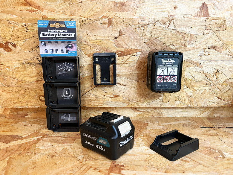 Batterier passar genom att klicka i hållaren och frigörs endast genom att trycka på frigöringsknappen på batteriet