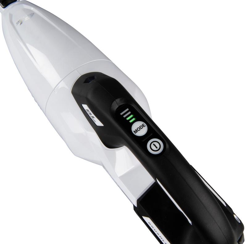 Stickdammsugare med kolborstfri motor och HEPA-filter.