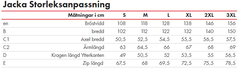 - CE: EN ISO 20471 klass 2 (strl XS-S) klass 3 (Strl M-3XL).