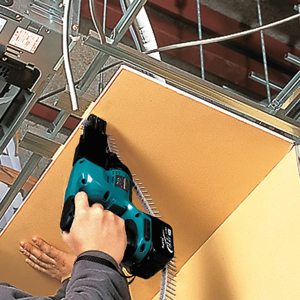 Skruvautomat sladdlös 18V för bandad skruv. Ny förbättrad matardel för 25-41 mm skruv med tyst och exakt justering av djupanhållet.