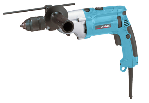 Slagborrmaskin på 1010 W med omkopplare for slagborrning eller vanlig borrning. Maskinen har samma varvtal och vridkraft i båda riktningarna med brytare för rotationsriktning