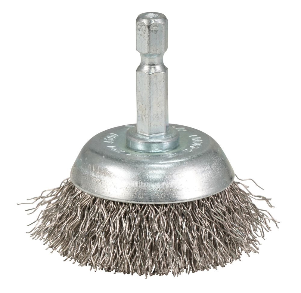 Stålborste i kopp form med bits fäste för att ta bort rost och smuts