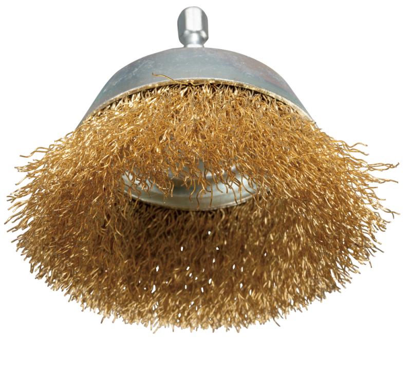 Stålborste i kopp form med bits fäste för att ta bort rost och smuts