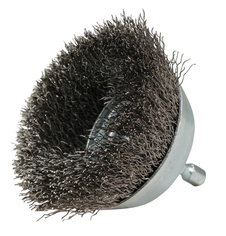 Stålborste i kopp form med bits fäste för att ta bort rost och smuts