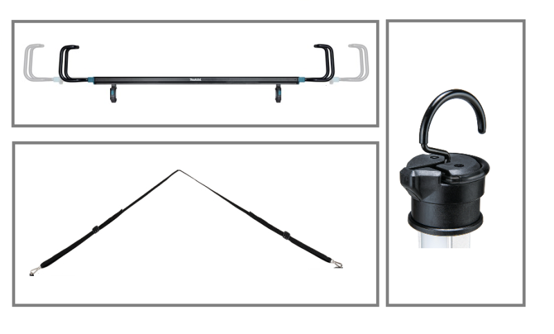 - De medföljande teleskopiska monteringskrokarna gör det möjligt att fästa lampan på motorhuven eller bakluckan.