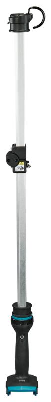 LED-stavlampa utrustad med 3 ljusstyrkenivåer, 7 ljusvinklar genom att rotera LED-lampan. Inklusive teleskopkrok, toppkrok samt 3 remhål för flera fäst- och upphängningsalternativ. Kontinuerlig driftid med ett 2,5 Ah 40V batteri är upp till 20 timmar..