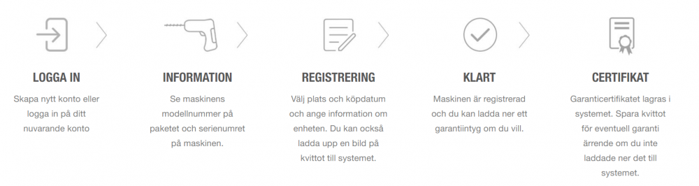 - Den förlängda garantin omfattar endast elektriskt motordrivna produkter (el-anslutna eller batteridrivna) samt gasdrivna spikpistoler;