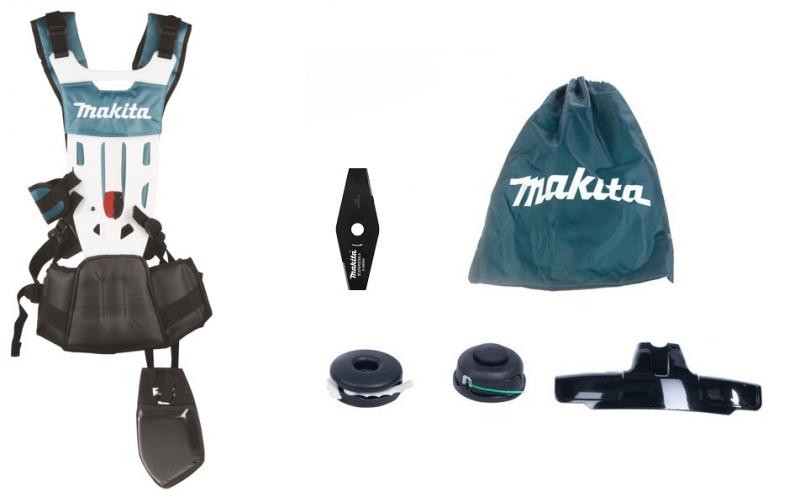 Med trimmern medföljer Klinga , Trimmerhuvud, Plastbladset, stänkskydd, sele samt påse att förvara tillbehören i.