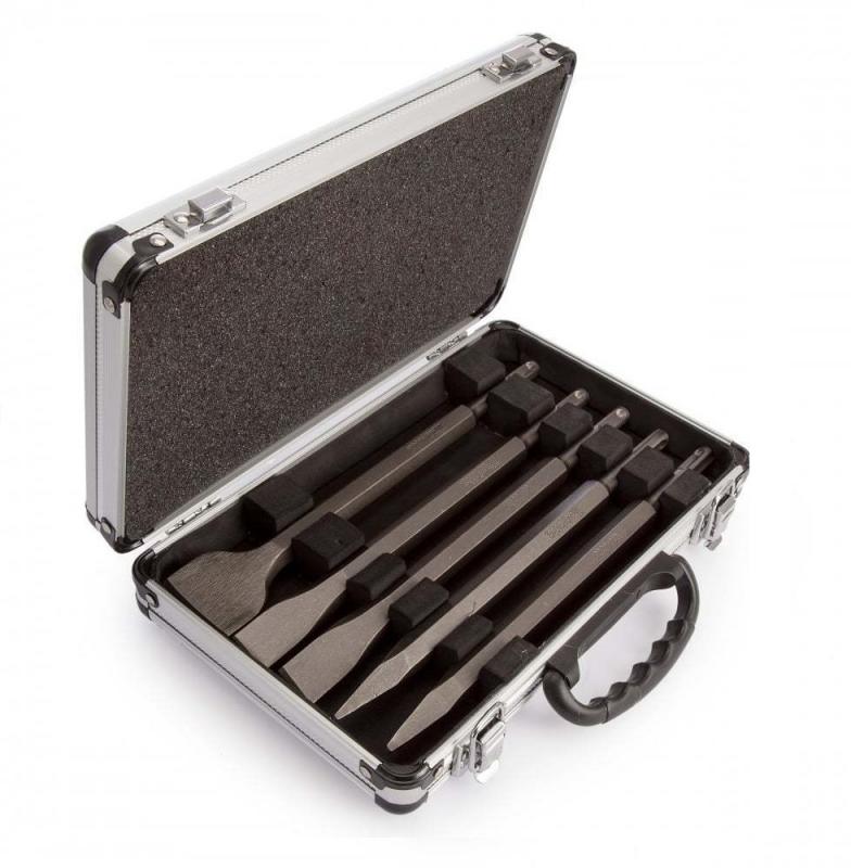 Mejselsats med 5 st standard SDS-plus mejslar som täcker de flesta behov.