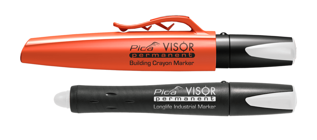 Pica Visor är en permanent vattenfast snabbtorkande vaxbaserad märkpenna med utbytbart stift (räcker lika länge som fem vanliga märkpennor) för industrianvändning som du vrider ut efter hand.
