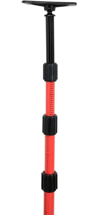Teleskopstativ i aluminium steglöst justerbart teleskopiskt upp till 4 meter fixeras mellan golv och tak är utrustad med ett laserfäste avsedd främst för marknadens alla kors och multilinjelasrar med 1/4" fäste.