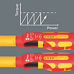 Kraftform Kompakt VDE-sats med 23 delar. 1 Safe-Torque Speed momentskruvmejsel 7508 VDE med fem valbara maximala åtdragningsmoment (0,4; 0,8; 1,2; 1,6; 2,0 Nm), 1 Safe-Torque Speed momentskruvmejsel 7516 VDE med fem valbara maximala åtdragningsmoment (2,4; 2,8; 3,2; 3,6; 4,0 Nm), båda med ett fast läge (Torque Lock) för obegränsat lossnings-/åtdragningsmoment, numerisk momentindikering, tillförlitlig slirning när inställt moment har uppnåtts, 1 handhållare 817 VDE. momentskruvmejsel och handhållare endast för Wera VDE-växelklingor. 20 VDE-växelklingor (157 mm långa) med verktygsväljare Take it easy: färgkodning efter profil samt lasergraverad storleksmärkning, övervägande med reducerad klingdiameter, som gör det enkelt att komma åt djupt liggande skruvar och fjädrar. I robust textilbox för skyddad förvaring och praktisk transport.