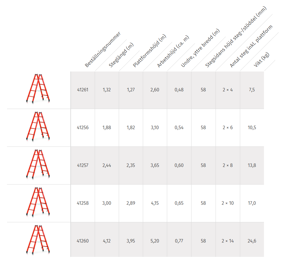 - Uppfyller standarden SS-EN 131 professionell.