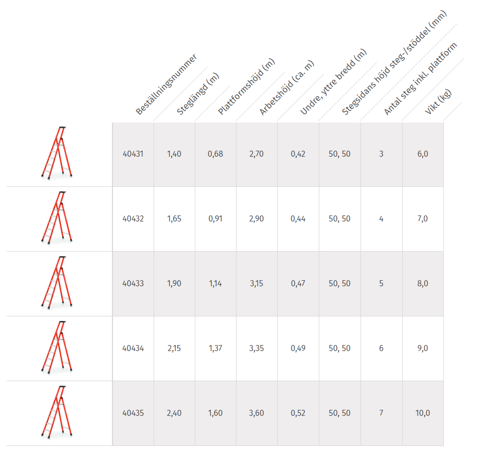 - Anpassad för arbeten i elektriska anläggningar tack vare isolerade stegsidor av glasfiberförstärkt plast.