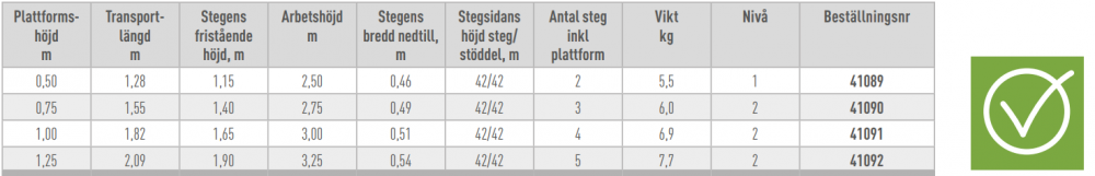 - Uppfyller standarden SS-EN 131 professionell.